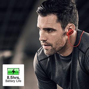 Up to 8.5 Hours of Battery, Enough Power for a Week’s Worth of WorkoutsNever worry about having to finish a workout or run without music thanks to the built-in rechargeable battery with up to 8.5 hours of battery life. |