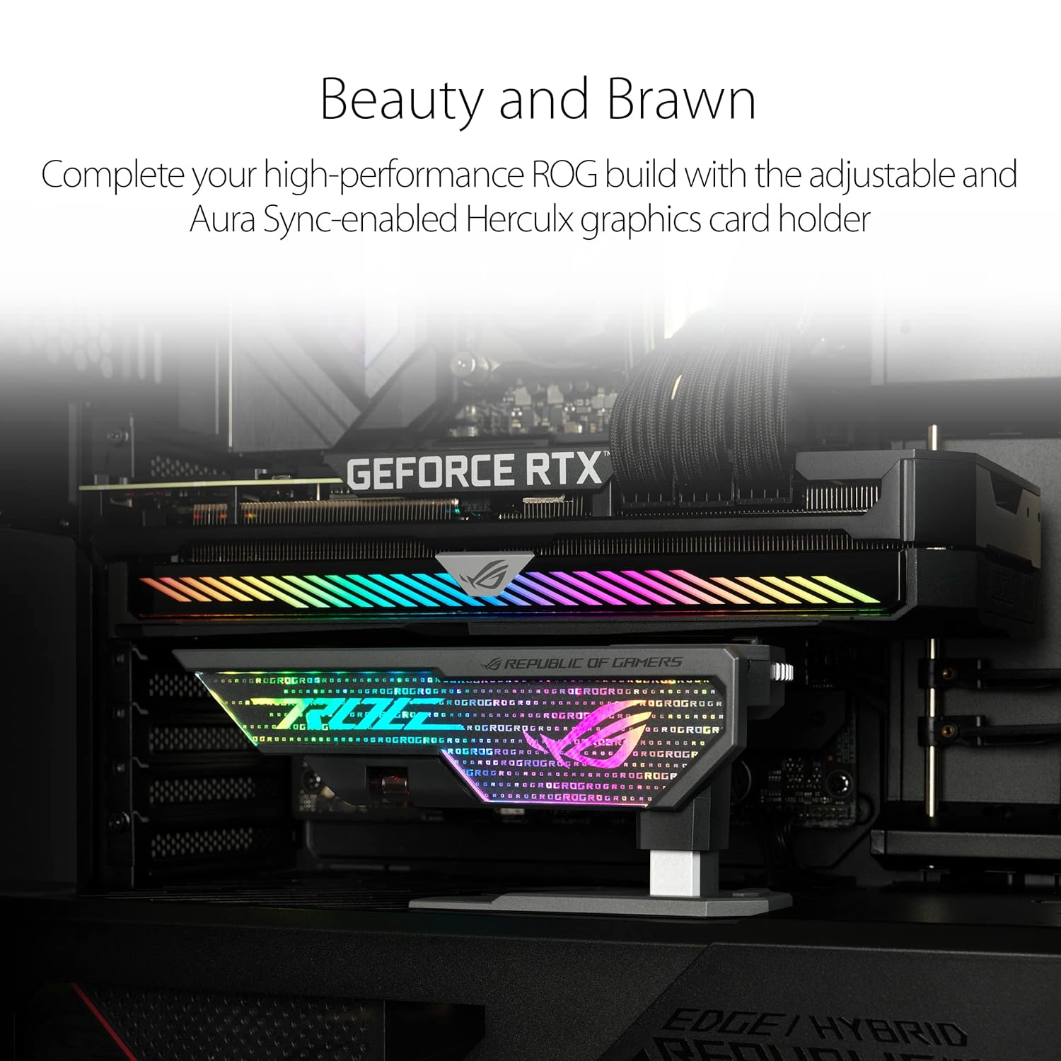 The ROG Herculx packs the structural integrity to bear the burden of even the heaviest graphics card. Toolless installation, precision adjustment, and customizable RGB lighting are combined into a space-saving design that neatly slides in to protect your investment in GPU horsepower.