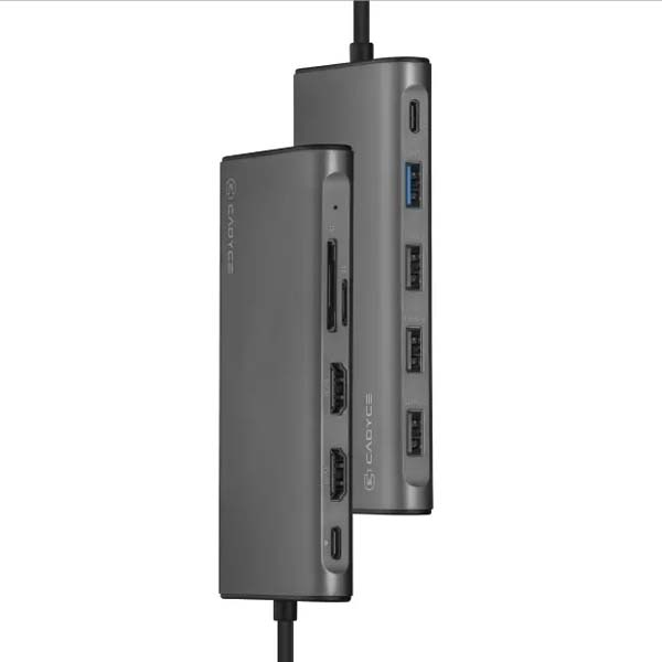 The Cadyce CA-2HDVG is a compact USB-C docking station that turns a single laptop port into a versatile productivity hub. With dual HDMI outputs, a VGA port, Gigabit Ethernet, high-speed USB-A, and SD/microSD card readers, it lets you effortlessly extend or mirror your display, connect peripherals, and stay charged—all in one sleek aluminum-finish adapter.