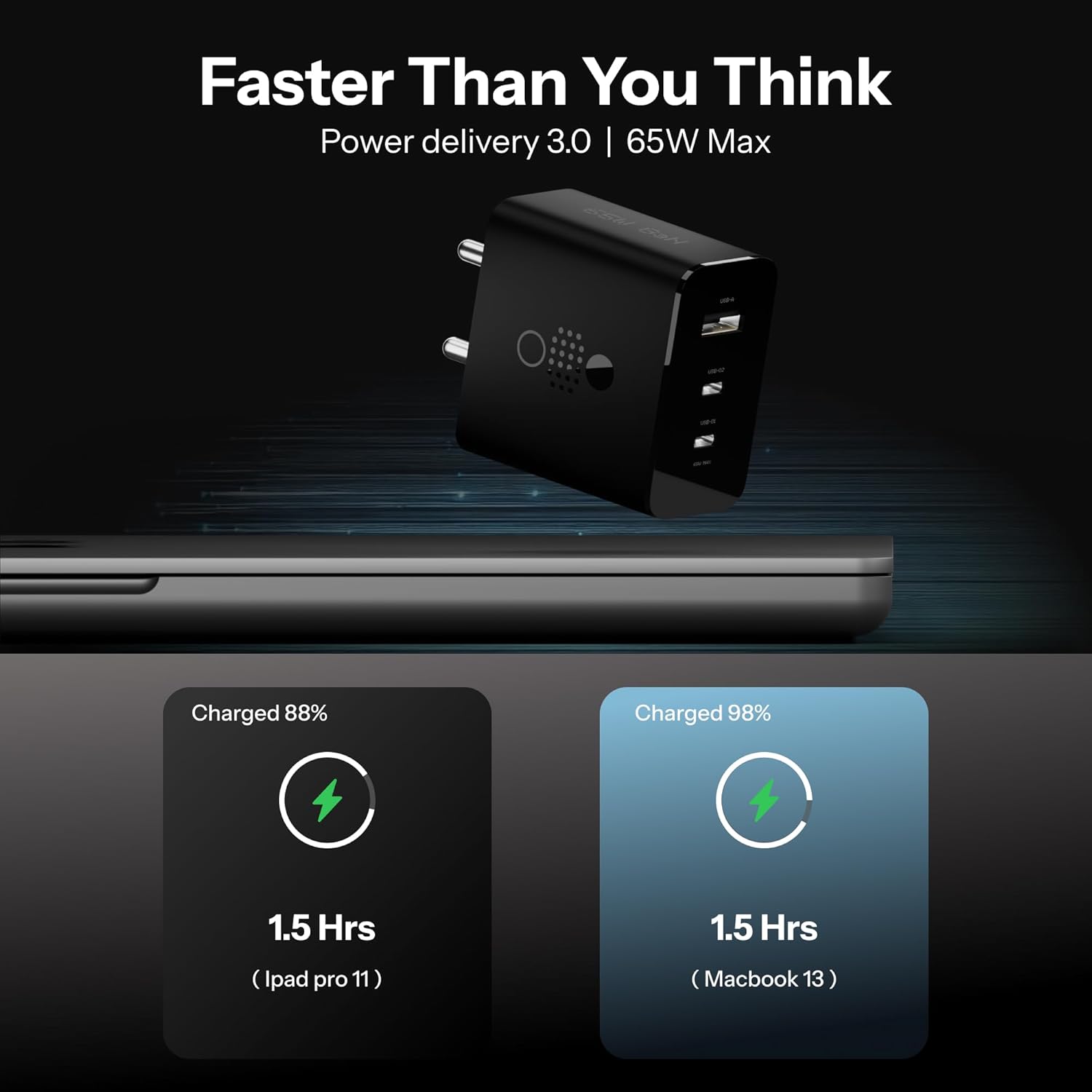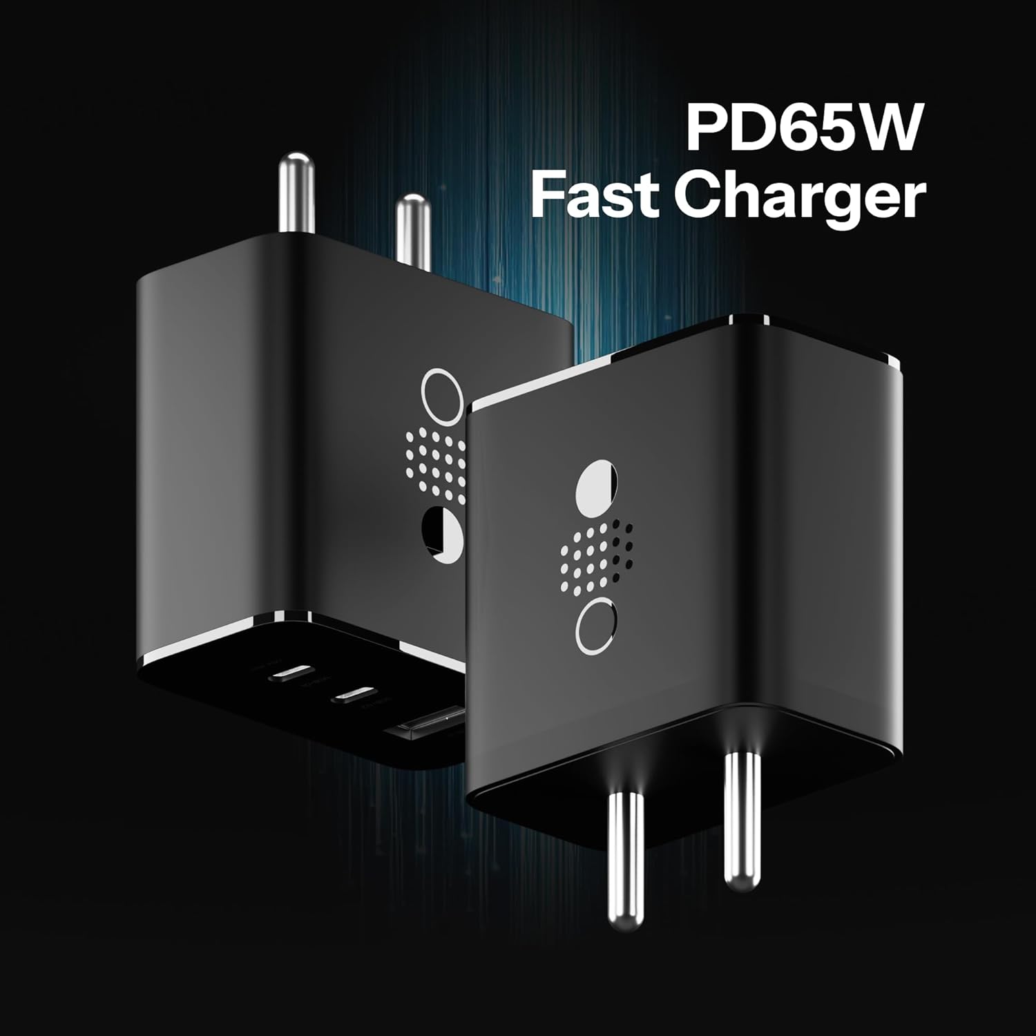 CMF by Nothing C332 65W Type A and Type C 3-Port Fast Charger (Adapter Only, GaN Technology, Dark Grey)
