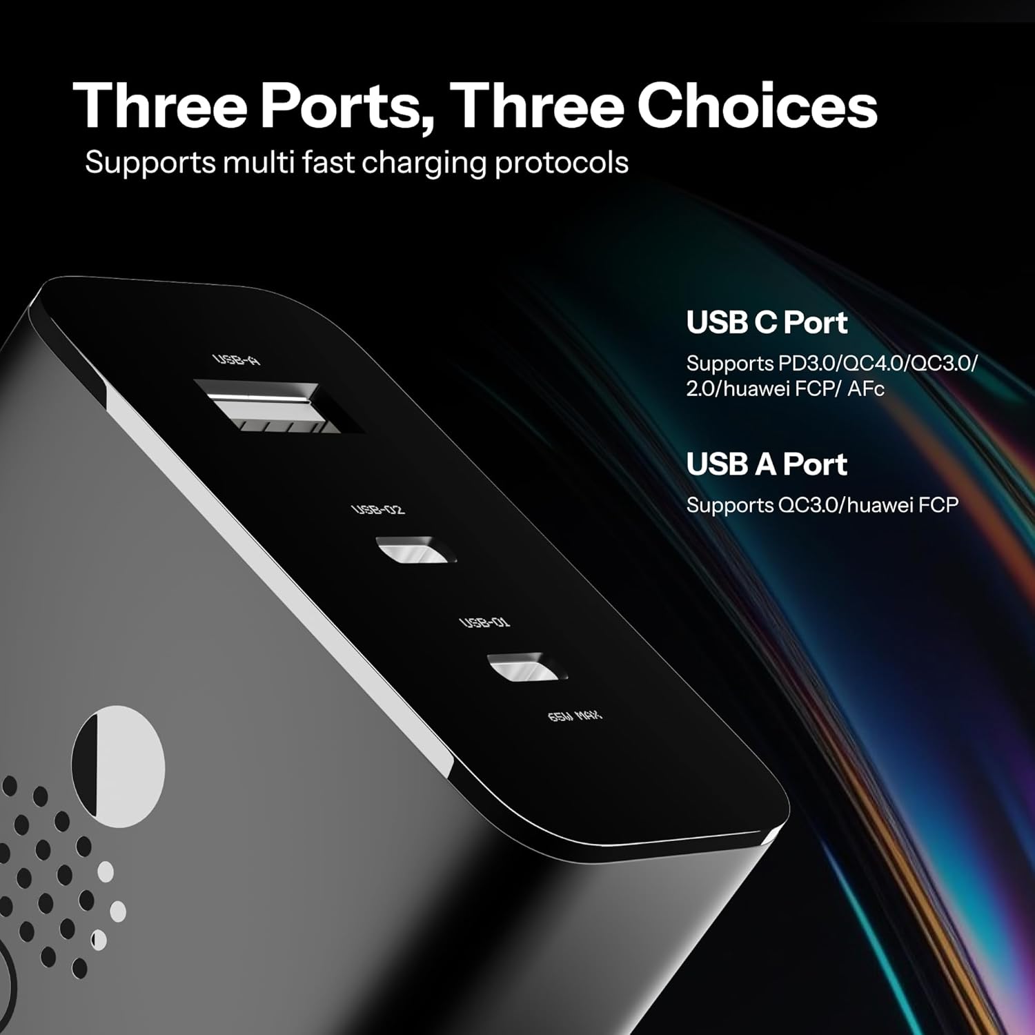 Experience versatility like never before with this adapter’s triple charging plug design. Equipped with two USB Type-C ports and one USB Type-A port, you can charge multiple devices simultaneously with ease. Say goodbye to the hassle of carrying multiple chargers and hello to convenience at your fingertips.