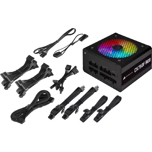 Corsair CX750F RGB Series fully modular power supplies deliver reliable 80 PLUS Bronze efficient power to your system, alongside vibrant customizable lighting from a 120mm RGB fan and a clean aesthetic.