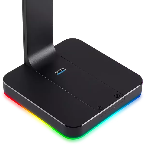 Proudly display your headphones with the ST100 RGB premium headphone stand, which features an aluminum structure, customizable RGB lighting and immersive 7.1 virtual surround sound.