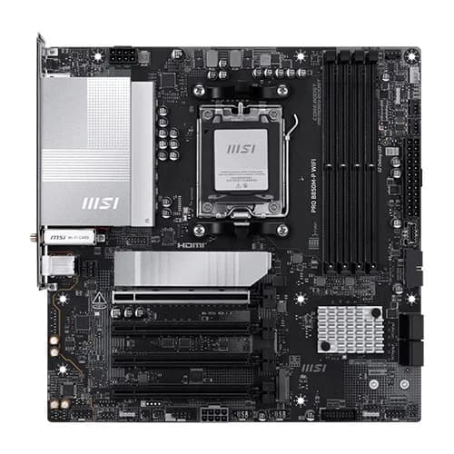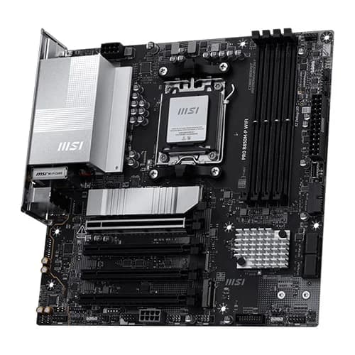 PRO B850M-P WIFI offers a simple design with a harmonious silver color scheme that perfectly matches both white and black PC builds. It is engineered with many exclusive features of MSI, a Wi-Fi 7 with EZ Antenna, 5G LAN, PCIe 5.0 M.2 with EZ M.2 Shield Frozr II, and Supplemental PCIe Power, ready for the AMD Ryzen™ 9000 series processors.