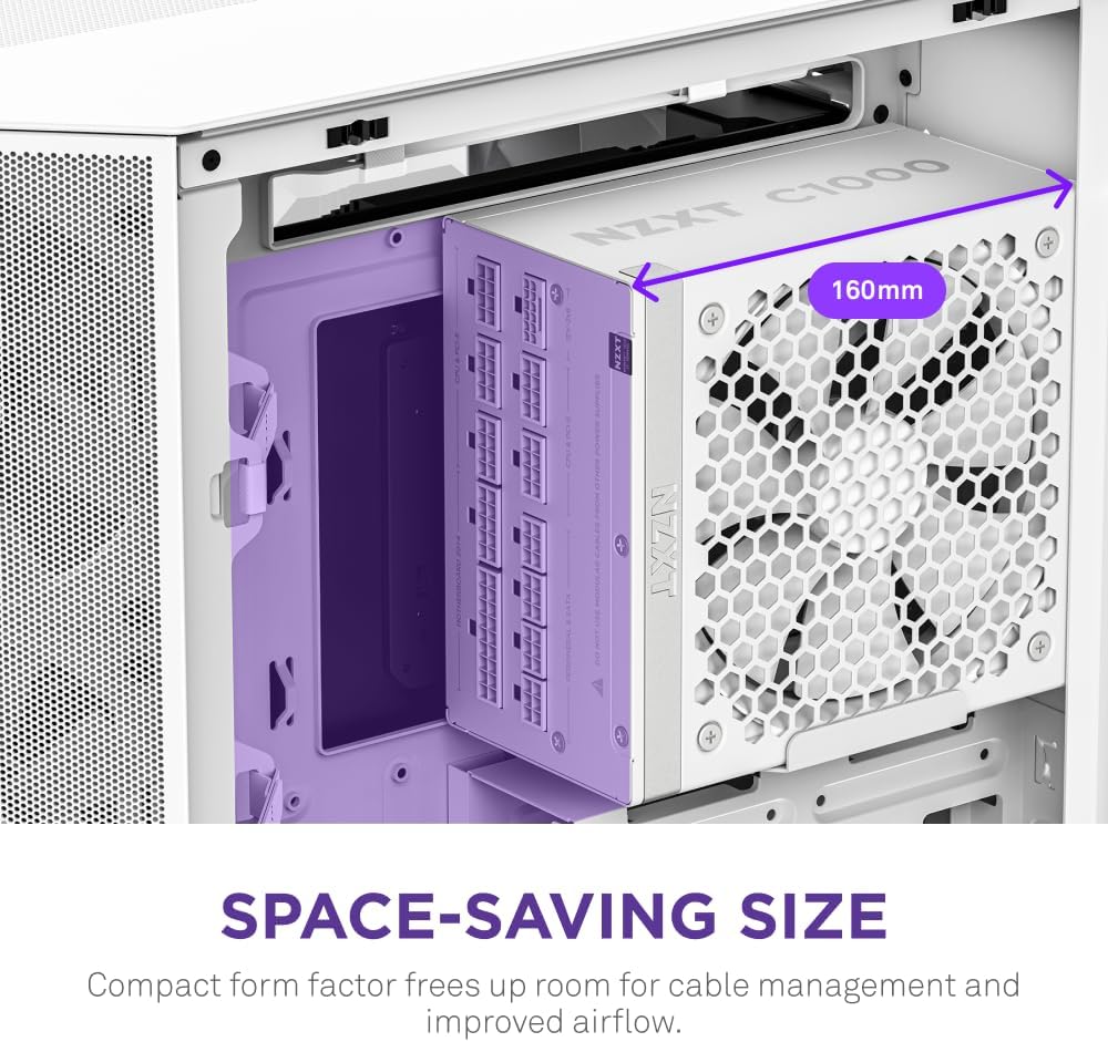 NZXT C1000 Gold ATX 3.1 Fully Modular Low-Noise PC Gaming Power Supply (White)