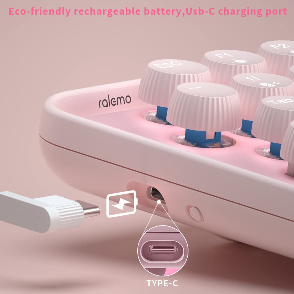Rapoo Ralemo Pre 5 Mechanical Keyboard with Multi-Mode Technology (Bluetooth), Backlight Enabled & Built in Battery. Compatible with Windows/Chromebook/PC/Laptop (Pink)