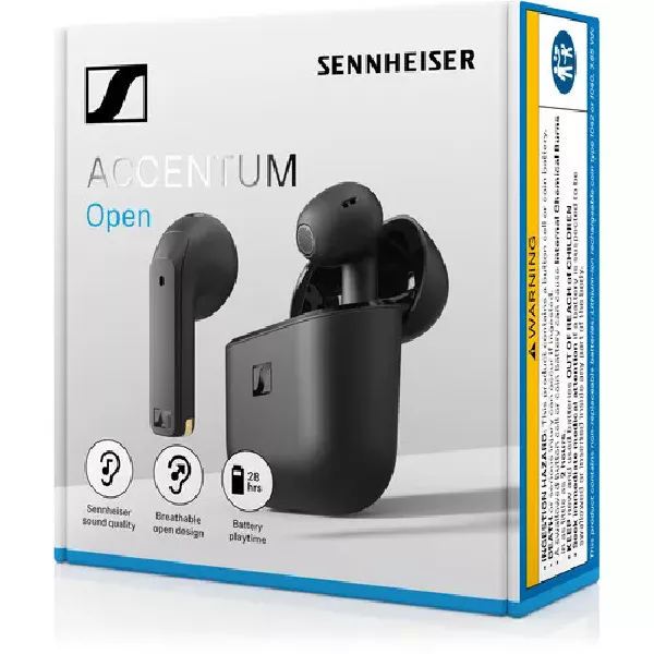 Sennheiser ACCENTUM Open True Wireless TWS Earbuds-Smart Touch Controls, Lightweight & Breathable Design, Upto 28H Battery, Quick Charging, Multipoint Connectivity (8 Devices),IPX4 Splash Resistance-Black