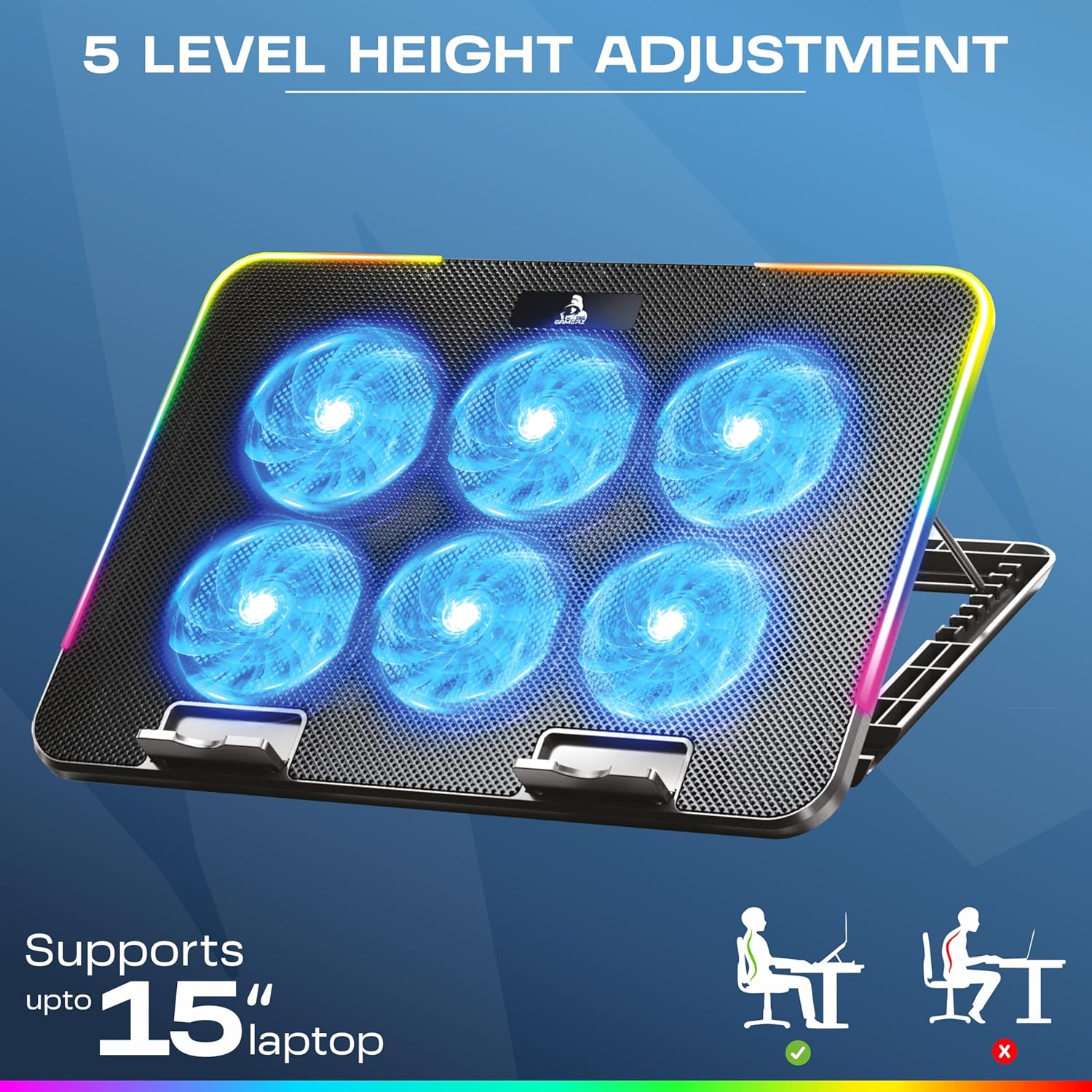- Durable and Anti-Skid: Made of high-quality ABS+Aluminium Alloy ensures strength and durability and anti-skid feature ensures a stable and secure platform. It is a cooling pad built to last and capable of withstanding the demands of intense gaming and workload.